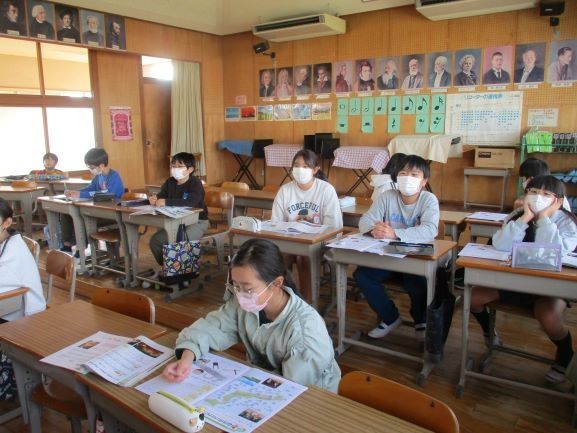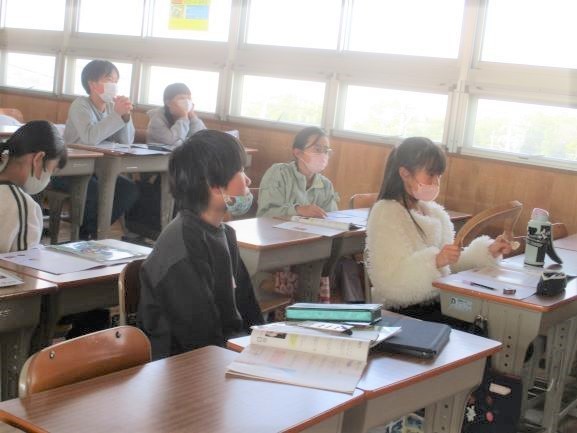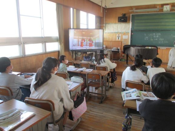 さて、授業では動画でこきりこ祭りの様子を見たり、使われている楽器「ささら」を演奏したりして、その特徴を感じ取っていました。