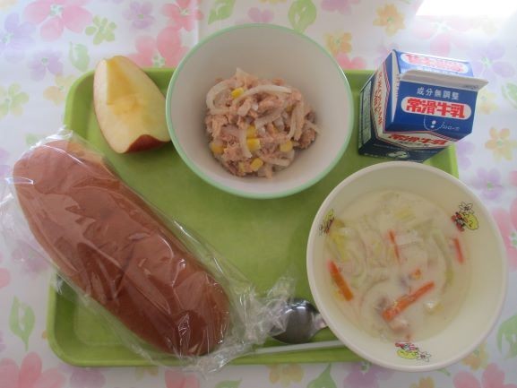 12月3日 給食 公開日 2025/12/03 更新日 2025/12/03 給食 今日の給食は、黒ロールパン、牛乳、さつまいものミルクシチュー、ツナと大根のサラダ(イタリアンドレッシング)、りんごエネルギー628キロカロリー、たんぱく質23.8グラムです 給食