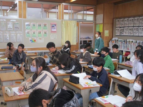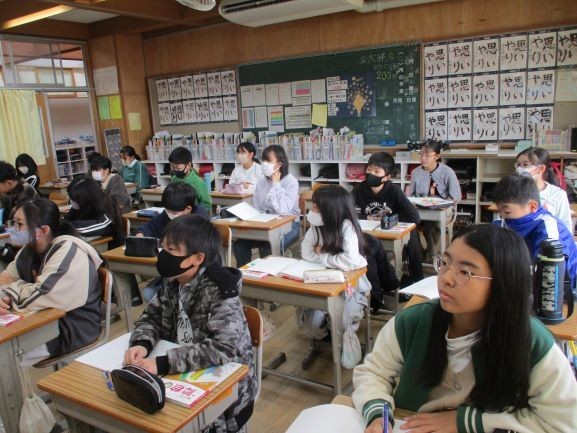 12月3日 比例を使って(6年2組) 公開日 2025/12/03 更新日 2025/12/03 6年 「全部の数を数えずに紙を約300枚用意する方法は?」という問題で考えを出し合っています。10枚ずつの束をつくるとよい、1枚の紙の重さを量って、それを300倍してみるというような方法を出していました。そして意見を出し合った結果「10枚の紙の重さを量り、それを30倍した重さの分だけ紙を用意する」という方法を考え出しました。比例の考えを使って考えることができました。 +2 6年生