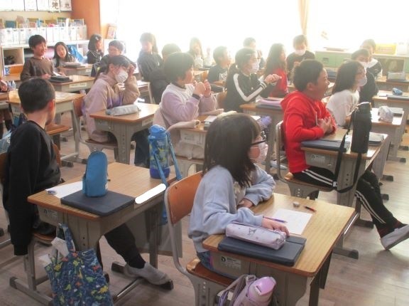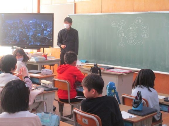 人権週間に合わせて、人権の標語をつくります。そのために、まず「人権」についてウェビングしました。人権の花運動に取り組んだ4年生ですから、スムーズに単語が出ています。この単語を手がかりに、5音・7音・5音を基本とした標語をつくっていくそうです。