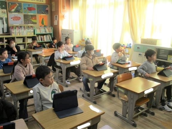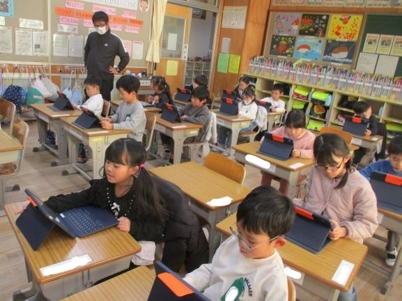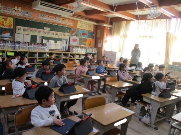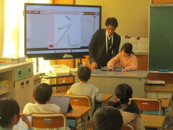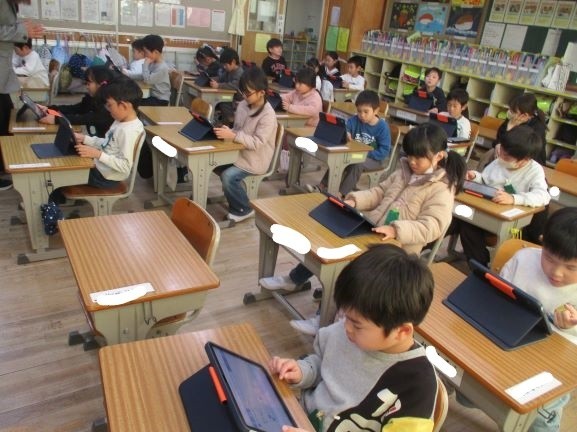 AIドリル導入への検証として、本校では7学級トライヤルを行います。今日は、AIドリルの業者の方から使い方についての説明を受けました。ひらがなの学習では、書き順が違っているとその指摘もされるようです。使い方を覚えた後は、自由に使ってみました。「え、もう終わりなの」という言葉が出るぐらい集中して学習していました。