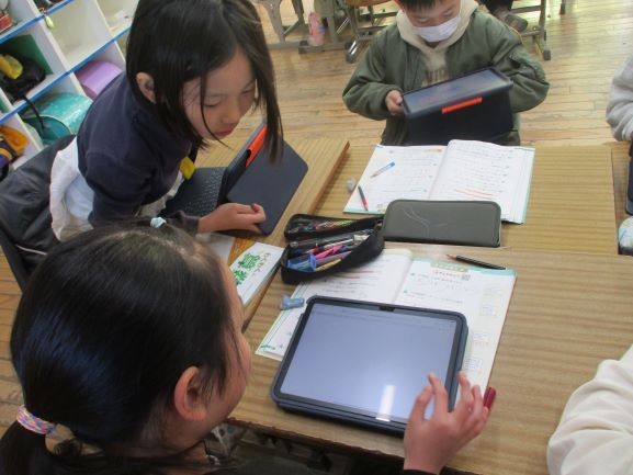 12月12日 AIドリル(3年1組) 公開日 2025/12/12 更新日 2025/12/12 3年 算数の分数単元の復習をしていました。まずは教科書を使って復習をしました。その後は、AIドリルを使って復習をしました。3年1組もAIドリルのトライヤルを行っているクラスです。正解を重ねていくとポイントがついていくので、時にはこども達同士でポイントを競い合いながら、楽しそうに進めていました。 +2 3年生