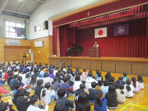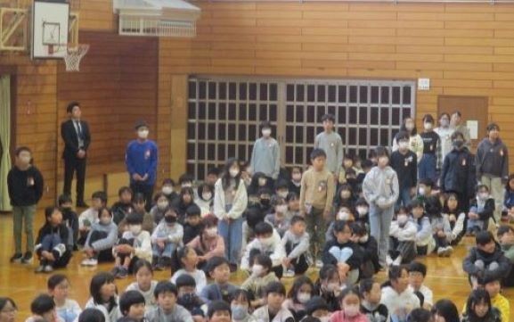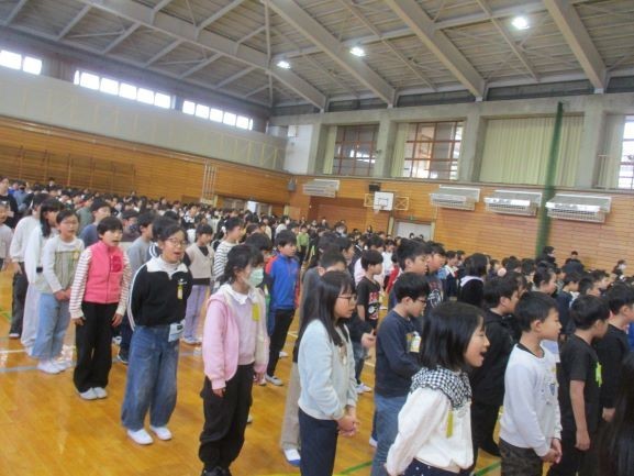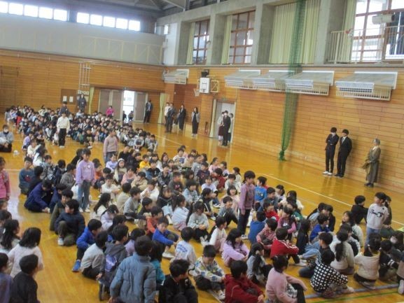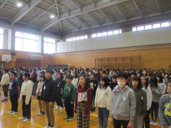 3学期の初日ですので、始業式を体育館で行いました。校長からは、本年度のスローガン「学びをつなぐ つなごう思い」から、授業で学んだことを「分かった」だけで「終わらせないで、学校生活や家庭生活、地域で生かしてほしいこと、相手の気持ちを想像して言葉や態度で伝え合ってほしいと話しました。「学び」と「思い」をしっかりとつないで、この1年が「最高だった」といえるように一日一日を大切に過ごしてほしいと思います。