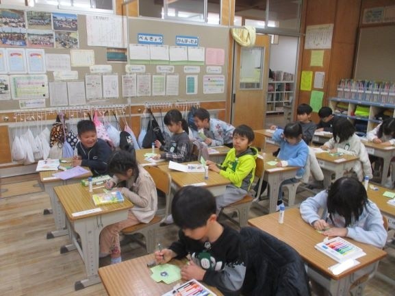1月8日 新1年生へのプレゼントづくり 公開日 2026/01/08 更新日 2026/01/08 1年 3学期は今の学年のまとめと次の学年への準備となります。1年生は4月からは2年生。新1年生が入学すると「お兄さん・お姉さん」の学年になります。 そこで、新1年生に向けてプレゼントづくりをしています。封筒をつくって、そこに朝顔の絵を描いています。中にこの夏に育てた朝顔の種を入れて新1年生に渡します。喜んでもらえるといいね。 1年生