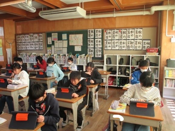 これまでたくさんの言葉と出会ってきました。名言や格言の中から自分が大切にしたい言葉を選びました。そして、選んだ言葉とそれに結び付く経験、大切にしたい理由を考え、ワークシートに書き込んでいます。好きなスポーツ選手の言葉を選んでいたり、家族や友達を思う言葉を選んでいたりと、その子らしさが出ているものを選んでいました。次の時間からは、これを文章に表していき、読み合っていきます。友達の考えを知るとともに、新たに素敵な言葉に出会えるといいですね。