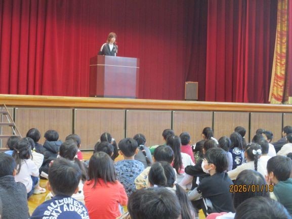 生徒指導担当からは最近の学校生活で気になっていることとして「ボールの片付け」「なわとび」についての話がありました。丁寧にボールを扱ってほしいこと、なわとびを振り回して歩くと危険なことを伝えました。話す人の方を向いてしっかりと聞くことができていたので、今日から意識してくれるでしょう。