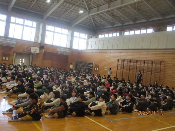 教員の話は、本日「1月19日は何の日なのか」に関するものでした。「いいくうき(119)」の語呂合わせにちなんで、「いい空気の日」とのことです。換気をして新鮮な空気を取り入れ、健康的に学校生活を送りたいですね。