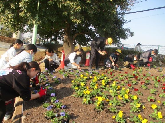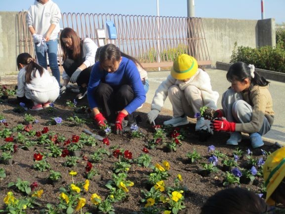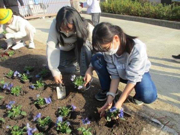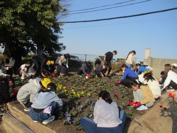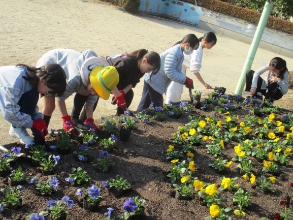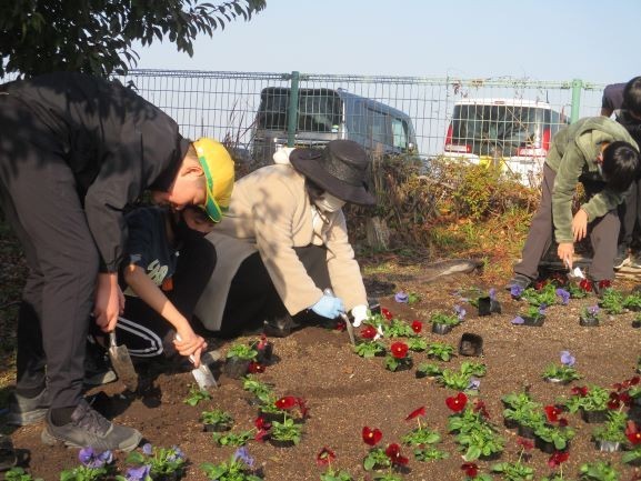1月19日 花壇の苗植え(緑化委員会・PTA環境部)