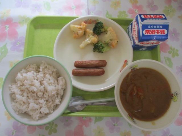 1月23日 給食 公開日 2026/01/23 更新日 2026/01/23 給食 今日の給食は、麦ご飯、牛乳、焼きウインナー、カレー、カリフラワーサラダ(人参ドレッシング)エネルギー636キロカロリー、たんぱく質23.4グラムです 給食