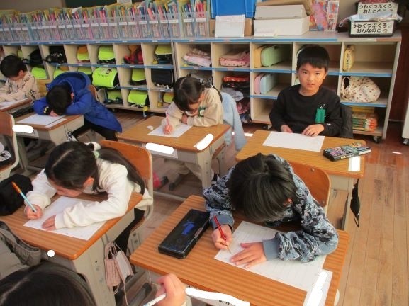 1月28日 感謝の気持ちを込めて(1年2組) 公開日 2026/01/28 更新日 2026/01/28 1年 3学期は、どの学年も自分の成長を実感し、周りの人の支えに感謝をする学期です。1年生も生活科の学習で自分の成長に気付きました。そして、誰にどんなことをしてもらったのか考えました。そこで、感謝の気持ちを表す歌と手紙の準備を進めていました。こっそりと準備をしているので、誰にどんなお礼の気持ちを伝えるのかは、まだまだ秘密です。 +4 1年生