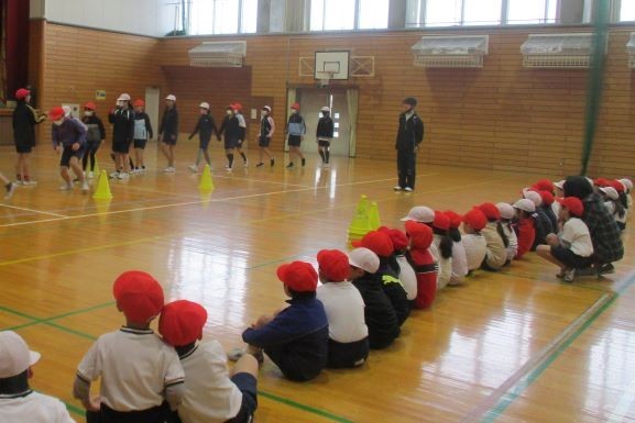 6年1組の児童がなわとび大会に向けて、大縄で8の字跳びの練習をしていました。そして、その姿を見ていたのは・・・ペア学級である1年2組の児童です。6年生が連続跳びで次々と飛んでいく姿を食い入るように見ていました。記録が200回を超えると、「すごいね」「さすが6年生だね」というつぶやきが聞こえてきました。1年生の児童もこんなふうに跳んでみたいという思いをもったようです。後半には1年生と6年生が一緒に8の字跳びをする練習をしました。そのときには、6年生のように連続跳びを練習する児童がいました。6年生は1年生が跳びやすいように縄をまわしたり、背中を押したり、声をかけてあげたりしていました。優しい6年生に支えられて、ますます8の字跳びが上達しますね。