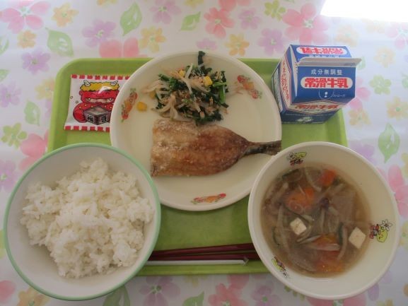 2月3日 給食 公開日 2026/02/03 更新日 2026/02/03 給食 今日は節分です。そこで今日の給食は、ご飯※おおぶニック学校給食米、牛乳、鰯の蒲焼き、菜花の和え物、のっぺい汁、節分豆エネルギー622キロカロリー、たんぱく質27.7グラムです 給食