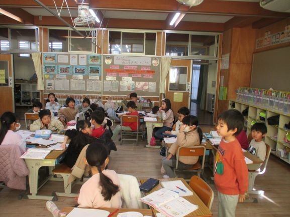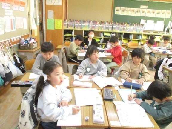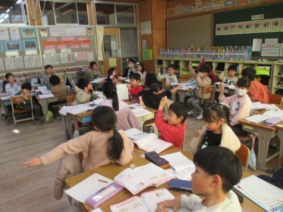 2月4日 たすのかな、ひくのかな(1年3組) 公開日 2026/02/04 更新日 2026/02/04 1年 問題の文章を読んで演算(たし算か引き算か)を決定することと、その訳を説明する単元です。たし算か引き算かを考えるためには、それぞれの意味が分からないとできません。今日は、問題文のどの言葉から、その式になったのかを説明しています。それを聞きながら、どういう場合がなに算になるのか、学習をしていました。こういった積み重ねが「文章題が苦手」という子をなくすには大切です。 +2 1年生