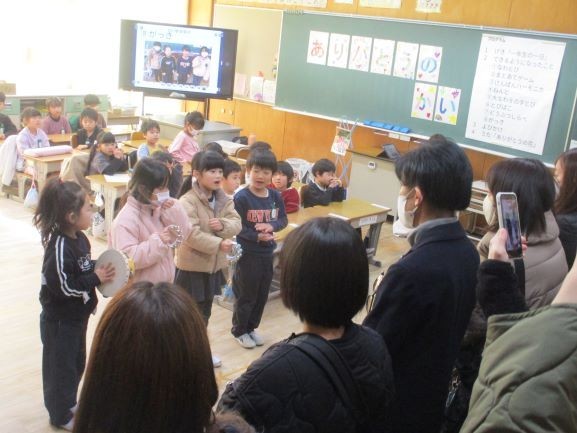 1年生は「ありがとうがいっぱい」をテーマに、この1年間で学んだことやできるようになったこと発表しました。最後の場面では今の姿があるのも、保護者の方のおかげだと気づき、感謝の手紙と歌のプレゼントを贈りました。