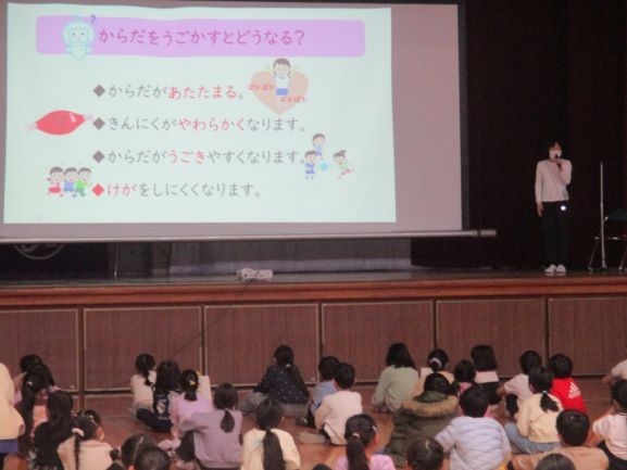 第2回学校保健委員会は「みんなで学ぼう!楽しいけが予防」をテーマとして、動作の専門家である理学療法士の方をお招きし、けがの予防に役立つ知識や動きを教えていただきました。けがに関するクイズに答えたり、体の使い方をゲームで確かめたりと楽しく学ぶことができました。今日学んだ動きは、継続することで効果が出てきます。ぜひ、お家の人に教えて一緒に続けてみてください。