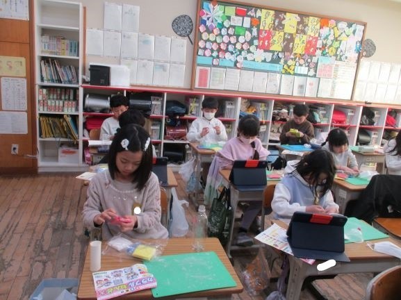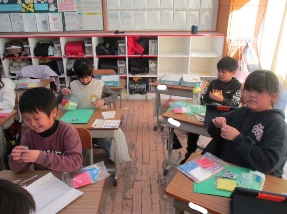 2月9日 空き容器の変身(3年2組) 公開日 2026/02/09 更新日 2026/02/09 3年 空き容器に粘土をつけて、自分だけの小物入れを作ります。設計図代わりの写真を見ながら、空き容器を切ったり組み合わせたりした後、粘土をつけています。自分が思ったような色を作ろうとして工夫をしていました。 +3 3年生