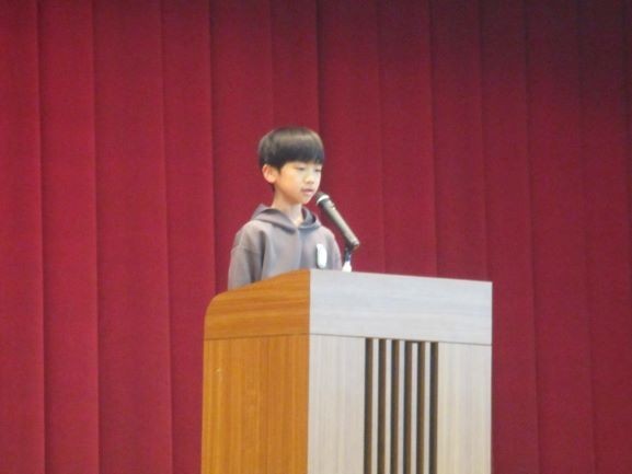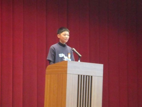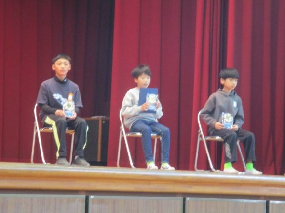 今日の朝会は健康賞の表彰を行いました。健康賞とは、大府市から「心身ともに健康で、何事においても積極的に取り組んでいる児童」に贈られる賞です。大府市からの盾を受け取った後、それぞれの児童が日ごろから健康について気を付けていることを発表しました。けやきっ子の皆さん、この三人の発表から自分でもやってみようと思うことはありましたか。自分の健康のために何か取り組むことができるといいですね。