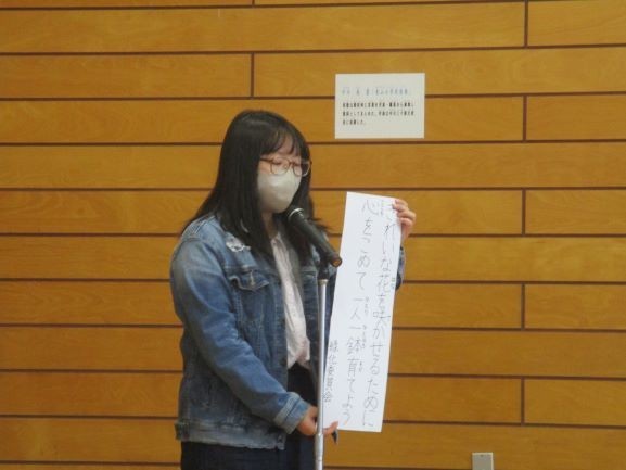 最後に緑化委員会から月目標の発表がありました。2月は「きれいな花を咲かせるために、心を込めて一人一鉢育てよう」です。今は株を大きくする時期です。つぼみを摘み取って栄養が株にまわるようにしていってくださいね。卒業式の会場はきっと皆さんが育てたパンジーできれいに彩られることでしょう。