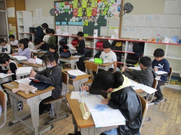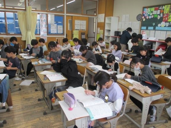 3月3日 復習 公開日 2026/03/03 更新日 2026/03/03 3年 3年生の算数では、割り算、かけ算の筆算、分数、小数、円と球など多くのことを学習してきました。そこで、現時点の定着度を調べるために復習問題を解いていました。計算問題は解答を見ながら自己採点を、図形の問題は教員が丸付けを行っています。「直径10センチの円」のかき方を忘れていた子がいたようです。ここで、もう一度復習しておいてよかったですね。これで、自信をもって4年生に進級できますね。 3年生