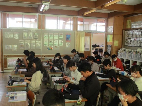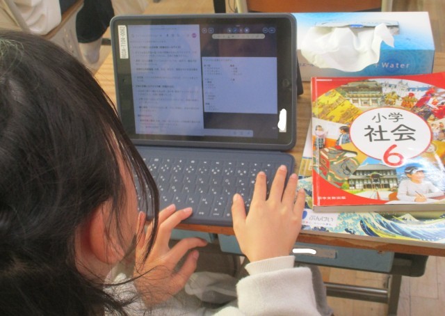 外国の人々の生活の様子などに着目して、日本の文化や習慣との違いを捉えていく単元です。今日はアメリカ合衆国について調べていました。食事、スポーツ、観光、貿易、歴史的なつながりなど多面的に調べて、まとめています。