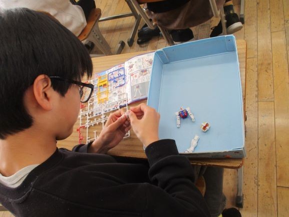 次の授業では、実際にガンダムのプラモデルの組み立て説明書を読み解き、自分の手で完成させるものづくりの面白さと達成感を味わうことができました。