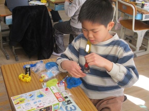 3月10日 作って遊ぼう(3年3組) 公開日 2026/03/10 更新日 2026/03/10 3年 「風やゴムの力の働き」「磁石の性質」「電気の性質」の学習で学んだことを生かして、おもちゃ作りをしています。電気や磁石等のどのような性質を利用しておもちゃ作りをするか、参考資料を見ながら考え、作り始めていました。楽しそうなおもちゃが出来上がりそうです。 +2 3年生