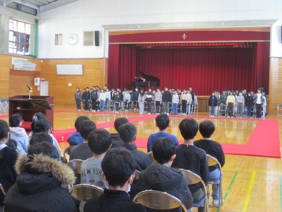 2時間目・3時間目は5年生との合同練習でした。本番通りの流れで、動きを確認しました。次回の合同練習では、式に参加しない4年生が保護者役になって参観します。かっこいいし方を見てもらいたいですね。そして、午後は学年レクリエーションの時間です。実行委員が企画したゲーム等をして、みんなと楽しみました。本校の主な進学先は、大府中学校と大府北中学校に分かれます。この学年メンバーとこうやって遊ぶのも、今日で最後になることでしょう。しっかり思い出をつくってください。