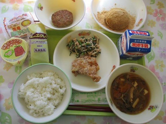 3月12日 給食 公開日 2026/03/12 更新日 2026/03/12 給食 今日の給食は、ご飯※おおぶニック学校給食米、牛乳、鶏肉の竜田揚げ、春菊とツナの和え物、もずくの味噌汁エネルギー616キロカロリー、たんぱく質24.9グラムです※写真に写っている他のものは、6年生のお祝い給食の献立です 給食