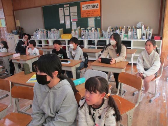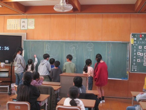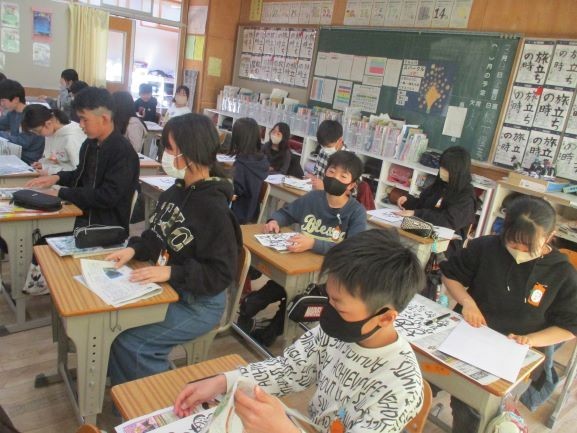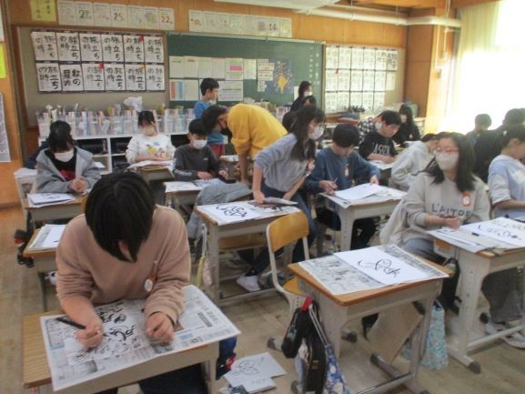 己書で学んだ方法を使って封筒にメッセージを書いたり、1年生との交流を楽しんだりしていました。最後に1年生とのいい思い出ができましたね。