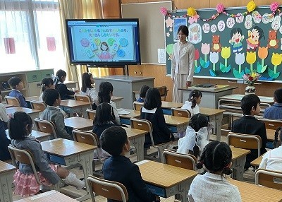 令和8年度の入学式です。晴れ渡る青空の下、96名の新1年生がけやきっ子の仲間となりました。