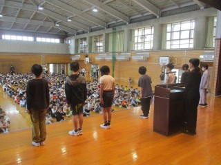 4月20日 任命式 公開日 2026/04/20 更新日 2026/04/20 学校行事 本日20日(月)の朝会では、任命式を行いました。児童会役員、委員会委員長、学級委員がそれぞれ任命されました。名前を呼ばれたときの返事がとても立派で、リーダーとしての自覚を感じました。みなさん、期待しています。 学校行事