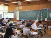 "I can dance well."や"Can you swim?"のように、自分ができることを伝えたり、相手のできることを尋ねたりする言い方の学習をします。そこで、使われるであろう単語の復習をしていました。動作を表す言葉やスポーツ名、楽器名とテンポよく復習をしていました。「元気のよい声で繰り返されているなあ」「1学期の間にこんなにたくさんの単語を覚えたんだなあ」と感心して聞いていました。