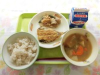 今日の給食は、麦ご飯、牛乳、鰯の蒲焼き、切り干し大根と里芋の煮物、実だくさん汁エ...