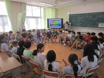 ワイワイタイム 公開日 2025/09/24 更新日 2025/09/24 今日の出来事 2学期最初のワイワイタイムです。大放課を拡大して、ペア学年でそれぞれ考えた内容で楽しく盛り上がります。少し暑さもおさまってきたので、外で楽しむペア学年もありました。行っている内容はクラスごとにいろいろですが、みんなとても楽しそうにこの時間を過ごしていました。 +7