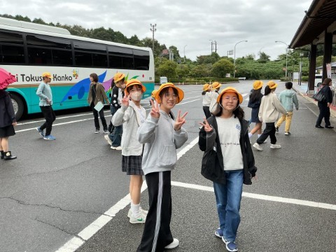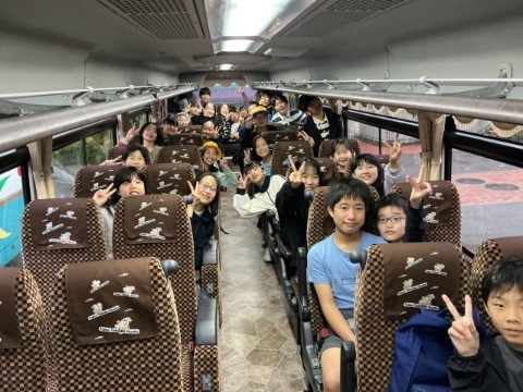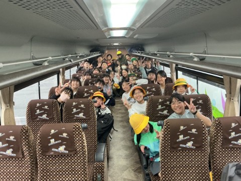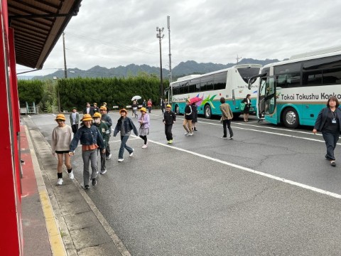 ドライブイン到着 公開日 2025/10/22 更新日 2025/10/22 6年 トイレ休憩のドライブインに到着しました。伊勢湾岸道で事故渋滞があったため、予定より少しおくれての到着となりました。雨は小雨になっています。バスの中はどの学級もバスレクで盛り上がっています。 +2 6年生