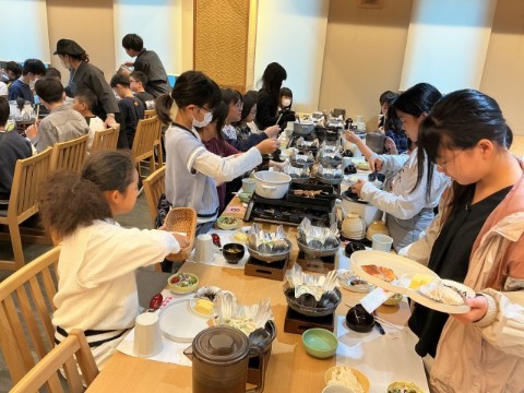 7時から朝食です。みんな元気そうで安心しました。しっかり食べて、今日も一日楽しみましょう。