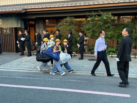 タクシー研修に出発です 公開日 2025/10/23 更新日 2025/10/23 6年 ホテルを出て、子どもたちがタクシー研修に出発しました。天気も良く、子どもたちもワクワクして出かけて行きました。ことの文化に触れて、しっかり学び、楽しんできてほしいと思います。 +2 6年生