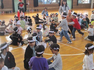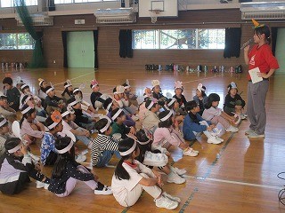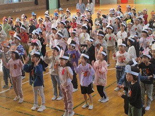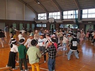 ハロウィンパーティー 公開日 2025/10/30 更新日 2025/10/30 1年 1年生がハロウィンパーティーを行っています。お化けやパンプキン、ドラキュラなどの頭飾りを付けて、ダンスやゲームで楽しみました。みんなダンスもノリノリで、本当に楽しそうでした。 +3 1年生