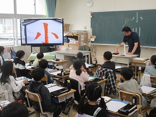 毛筆にも慣れてきました 公開日 2025/10/31 更新日 2025/10/31 3年 3年生の書写の授業です。毛筆にも慣れ、こどもたちの筆遣いも様になってきています。小筆で書く名前も、しっかりととめはねはらいを意識していました。 3年生