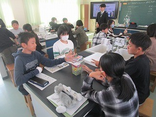 理科の授業 公開日 2025/11/07 更新日 2025/11/07 6年 6年生の理科の授業です。生き物同士のつながりや環境との関わりについて学習しています。ゲームを通して楽しみながら、わかりやすく学んでいます。 6年生