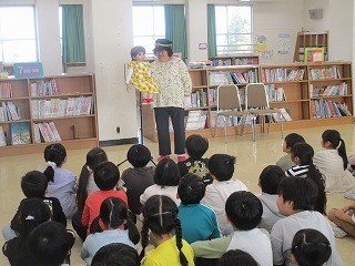 出前読み聞かせ 公開日 2025/11/07 更新日 2025/11/07 2年 2年生のこどもたちに、マシュマローズの方たちが読み聞かせをしてくださいました。読み聞かせといっても、エプロンと人形を使ったお話や、腹話術を交えた会話劇など、工夫を凝らしたお話会です。こどもたちはとても楽しそうです。 2年生