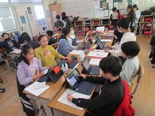 今週末の学習発表に向けて、5年生が練習をしています。体験したり調べたりした内容をまとめ、発表のスライドや原稿を協力して作り上げました。聞き手に伝わりやすいように、声の大きさや話すスピードなども考えながら、一生懸命練習していました。