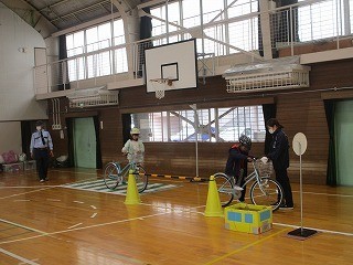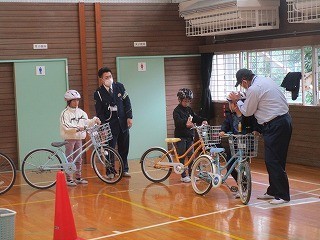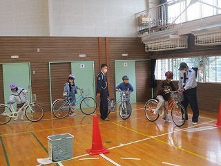 3年生が交通安全教室を行いました。東海警察署の方や、市の生活安全課の方、地域の青パトの方々のご指導の下、自転車の安全な乗り方について学び、実際に自転車に乗って体験をしました。交通事故にならによう、道路を走行する場合には十分注意してほしいと思います。