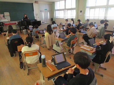 きれいな音色 公開日 2025/12/15 更新日 2025/12/15 4年 音楽室からきれいな音色が響いてきました。4年生がリコーダーでもののけ姫を演奏しています。運指に気をつけながら、強弱をつけて柔らかな音色を響かせていました。 4年生