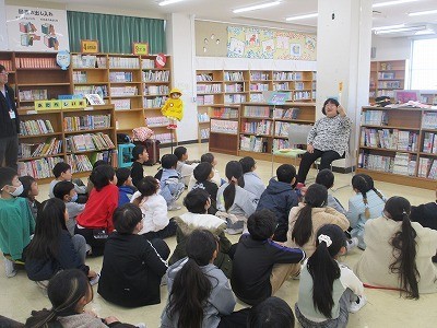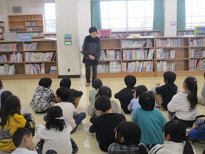 お話会 公開日 2025/12/16 更新日 2025/12/16 3年 マシュマローズの方々による3年生へのお話会が行われました。語りや腹話術、小道具を使うなど、いろいろな手法でこどもたちにお話を聞かせてくださいました。3年生のどのクラスのこどもたちも楽しそうにお話に聞き入っていました。 3年生