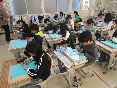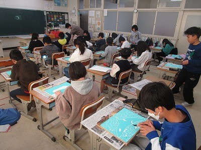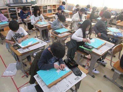彫刻刀を使って 公開日 2026/02/04 更新日 2026/02/04 4年 4年生の図工の授業です。版画版に下絵を描き写し終わり、いよいよ彫刻刀で彫り進めていきます。真剣に取り組みながら慎重に作業を進めていて、こどもたちの緊張が伝わってきました。 4年生