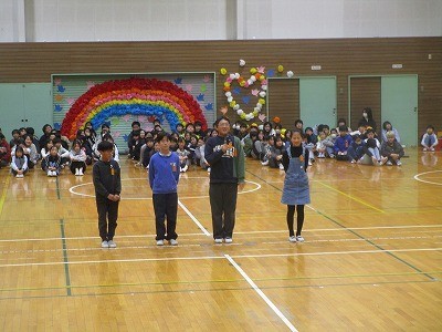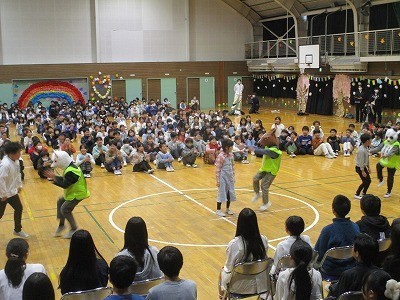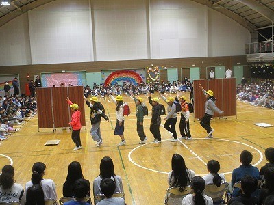 6年生を送る会② 公開日 2026/03/05 更新日 2026/03/05 今日の出来事 3年生から5年生は、それぞれ工夫を凝らした出し物を取り入れ、6年生を楽しませました。楽しみながら演技したり踊ったりする姿に、大きな笑いや手拍子が起きていました。 +7