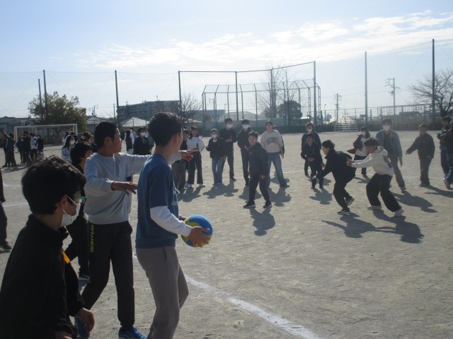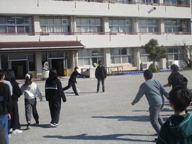 学年レク 公開日 2026/03/09 更新日 2026/03/09 6年 6年生が学年レクでドッヂボールをしています。男女混合チームのクラス対抗で、なんと先生チームも入れての6チームで総当たり戦です。声援と歓声や笑い声が運動場に響き、みんな笑顔でとても楽しそうでした。 +3 6年生