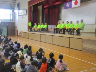 今朝は、パトロール隊のみなさんを紹介する式を行いました。