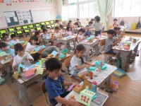 1年生の図工、「おってたてて」のその後です。本番の紙で、おったり、切ったり、た...